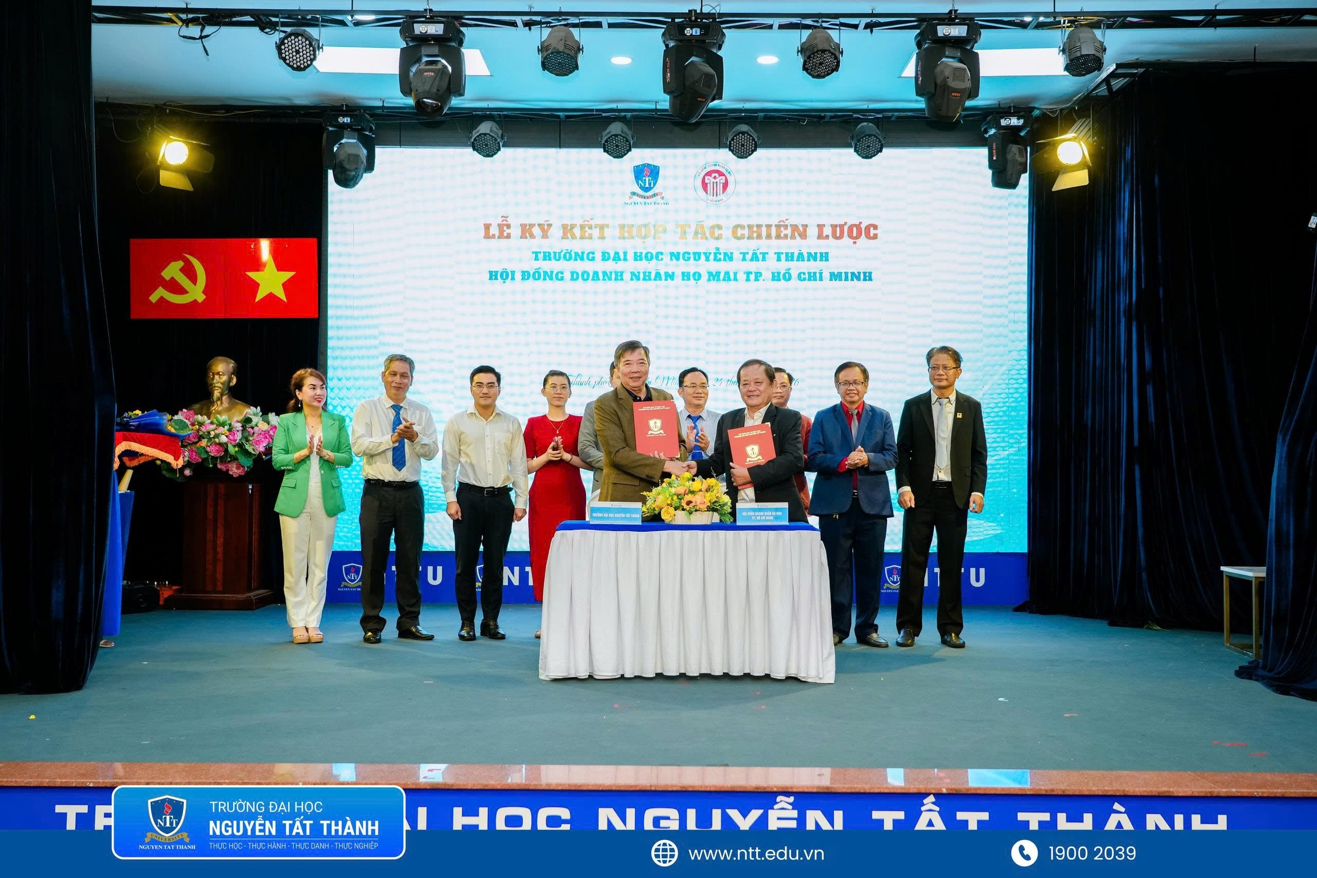 Ký kết với Hội đồng Doanh nhân Họ Mai TP.HCM Published 25/03/2026 at 2560 × 1707 in Diễn đàn B2B – NTTU lần thứ 22: Chuyển đổi xanh trong kỷ nguyên số ← Previous Next →