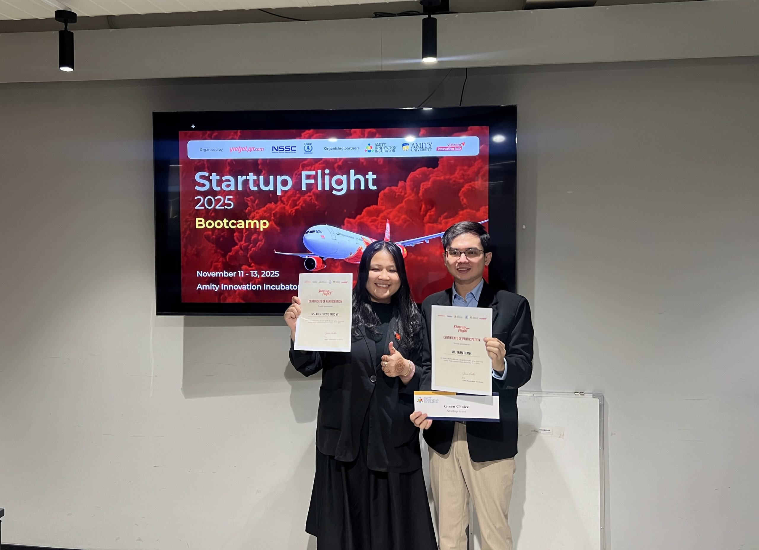 Startup Flight là chương trình hỗ trợ khởi nghiệp quy mô quốc tế do Amity Innovation Incubator (Ấn Độ) phối hợp cùng Trung tâm Hỗ trợ khởi nghiệp Quốc gia (NSSC – Việt Nam) tổ chức thường niên, với Vietjet Air là nhà tài trợ chính. Sự kiện quy tụ gần 600 đội thi đến từ nhiều quốc gia, trải rộng các lĩnh vực như AI, công nghệ y tế, robot, năng lượng, logistics, nông nghiệp công nghệ cao và môi trường.