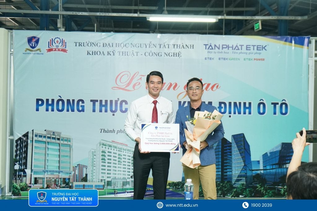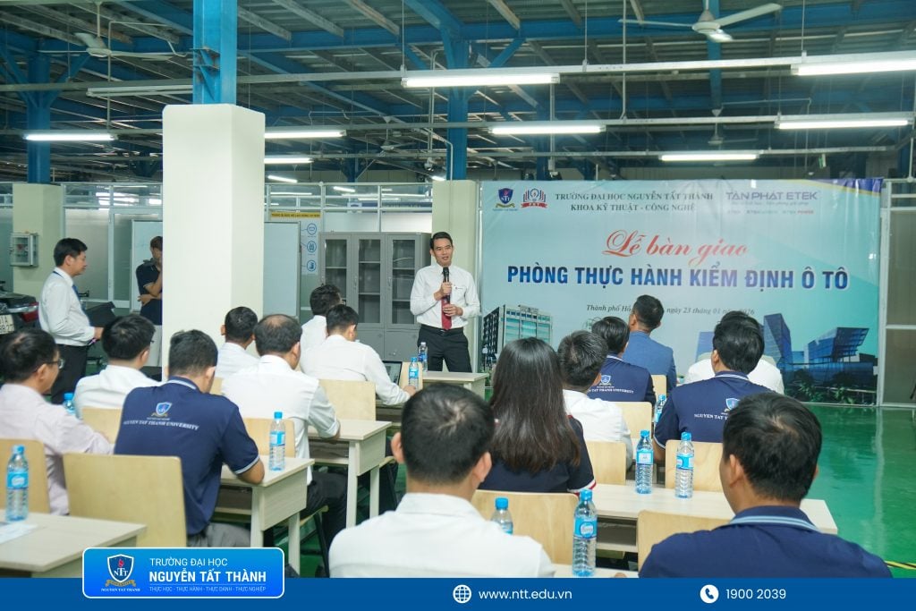 NTTU – Trong nỗ lực tăng cường cơ sở vật chất phục vụ đào tạo theo định hướng ứng dụng, gắn lý thuyết với thực tiễn nghề nghiệp, ngày 23/01/2026, Khoa Kỹ thuật – Công nghệ đã phối hợp cùng Công ty Tân Phát Sài Gòn tổ chức Lễ bàn giao Phòng thực hành Kiểm định ô tô tại Xưởng thực hành Vân Khánh.