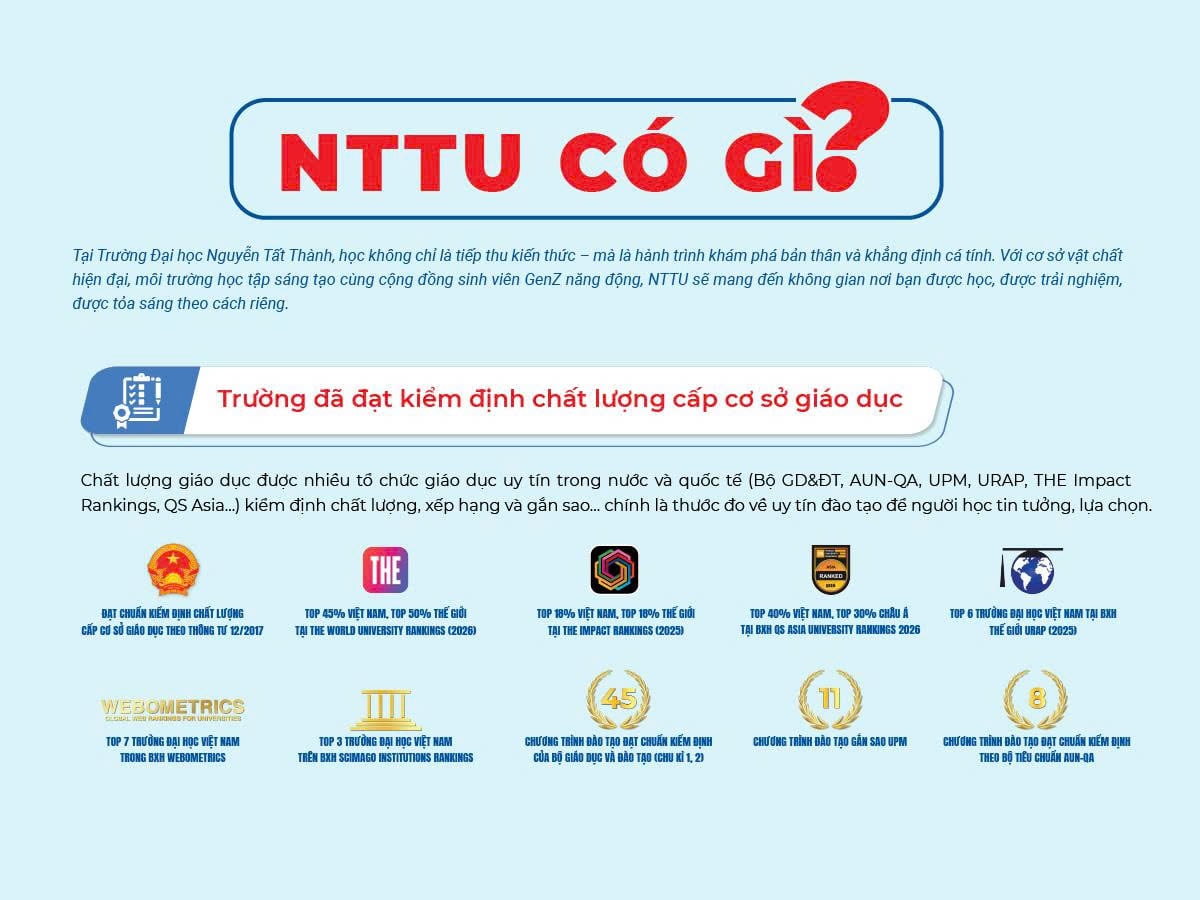 Không gian học tập hiện đại tại Trường Đại học Nguyễn Tất Thành với thư viện thông minh, khu học nhóm và khu sáng tạo giúp sinh viên học tập linh hoạt và đầy cảm hứng (3) Published 17/04/2026 at 1200 × 900 in Ngành Quản trị Khách sạn NTTU 2026: Mở rộng kinh nghiệm thực hành, cơ hội nghề nghiệp ← Previous Next →
