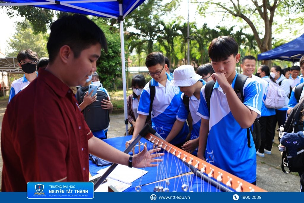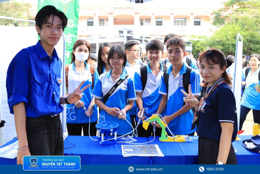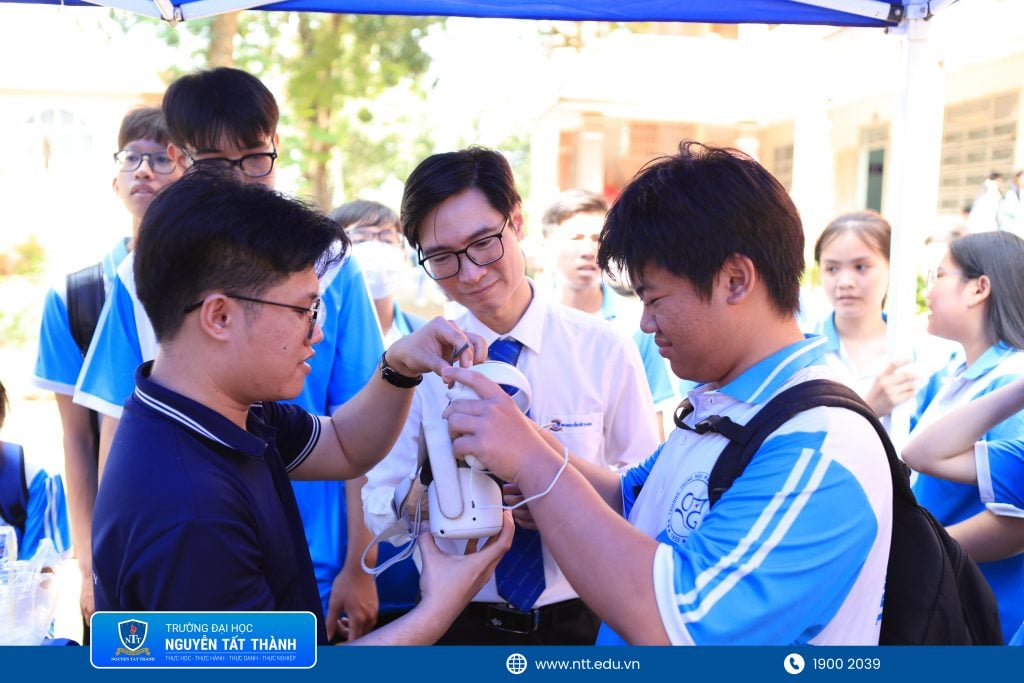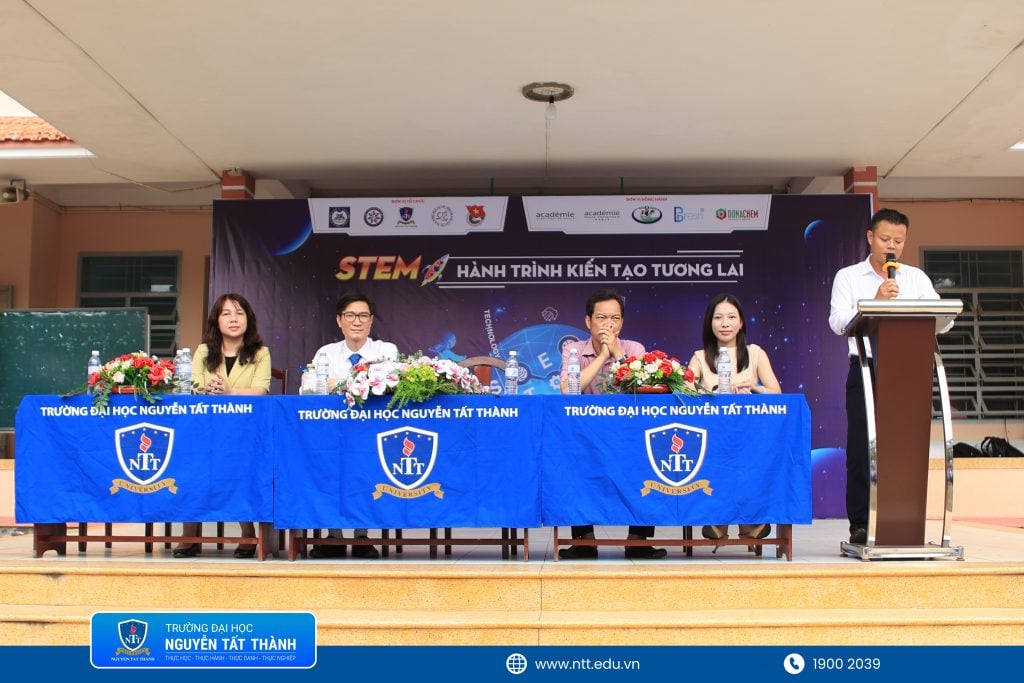 Buổi lễ vinh dự có sự hiện diện của PGS.TS. Đinh Văn Phúc – Viện trưởng Viện Khoa học Liên ngành, Trưởng khoa Khoa học Ứng dụng & Công nghệ, ThS. Nguyễn Thị Bích Ngọc – Phó trưởng phòng Truyền thông cùng đội ngũ giảng viên, chuyên viên Trường Đại học Nguyễn Tất Thành, các chuyên viên đến từ doanh nghiệp, thầy cô giáo và đông đảo học sinh Trường THPT Cần Giuộc.