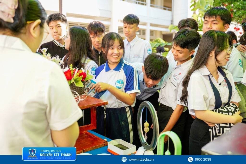 Học sinh hào hứng tham gia các trải nghiệm tại gian hàng của Trường ĐH Nguyễn Tất Thành