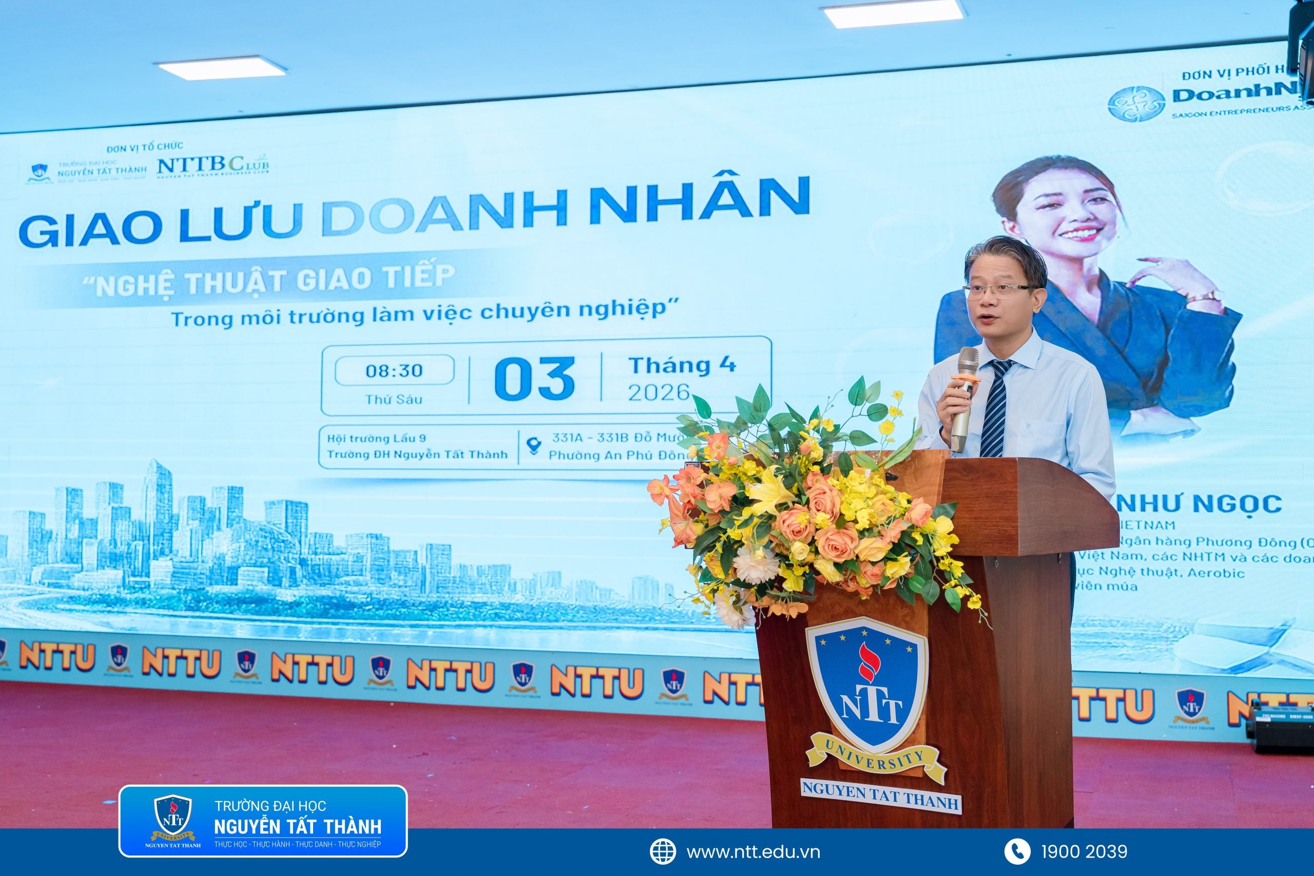 PGS.TS. Mai Hải Châu – Trưởng Phòng Quan hệ Doanh nghiệp và Việc làm sinh viên phát biểu khai mạc Published 06/04/2026 at 2560 × 1707 in STEP UP – Kết nối Doanh nhân & Sinh viên: Bồi dưỡng kỹ năng giao tiếp trong môi trường làm việc chuyên nghiệp Next →