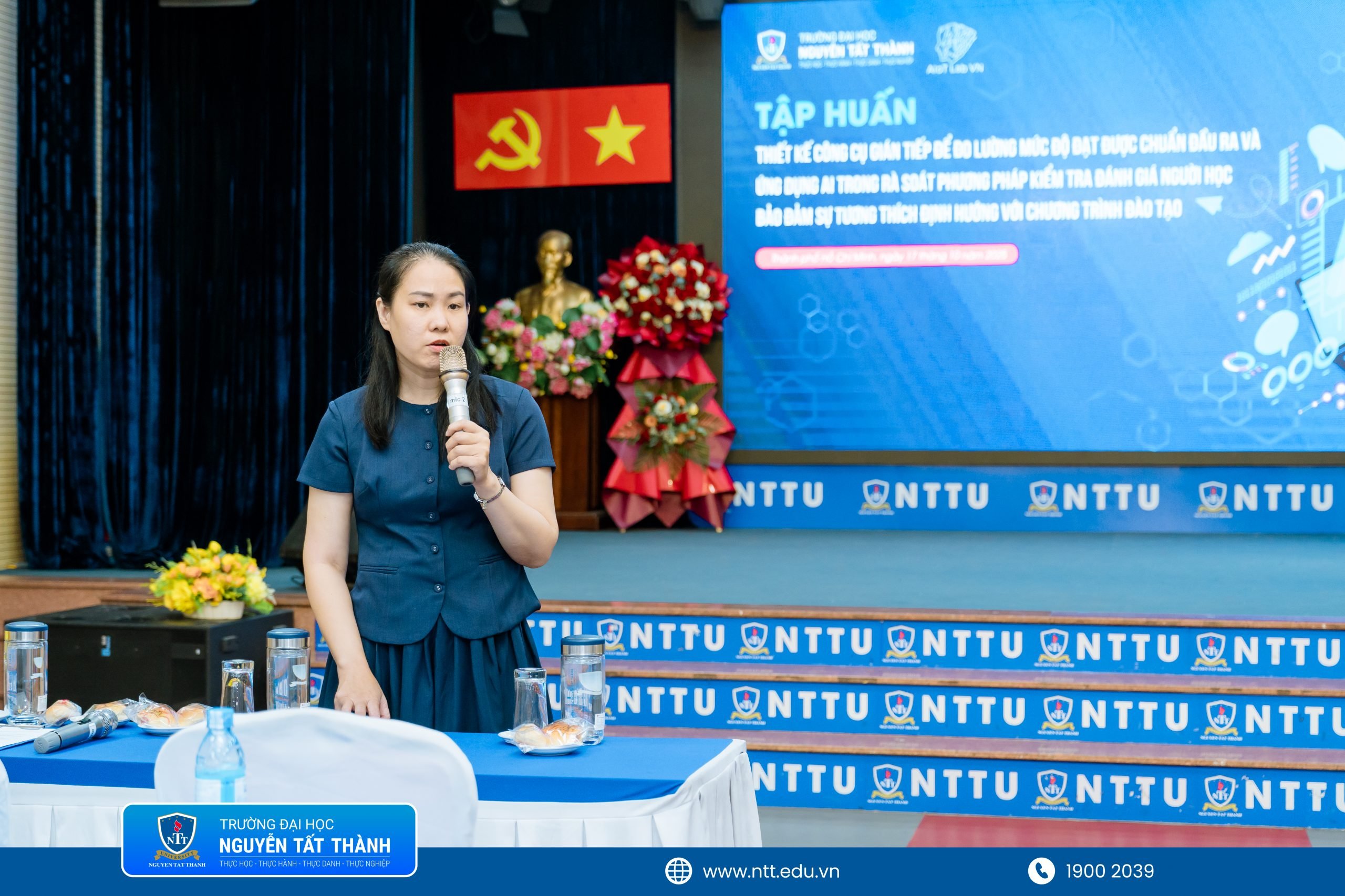 NTTU – Vừa qua, tại cơ sở Xóm Chiếu, Trường ĐH Nguyễn Tất Thành đã diễn ra buổi tập huấn chuyên đề “Thiết kế công cụ gián tiếp để đo lường mức độ đạt được chuẩn đầu ra và Ứng dụng AI trong rà soát phương pháp kiểm tra, đánh giá người học bảo đảm sự tương thích định hướng với chương trình đào tạo”. Chương trình thu hút gần 160 giảng viên và cán bộ phụ trách bảo đảm chất lượng đến từ 27 đơn vị đào tạo và hỗ trợ đào tạo trực thuộc Trường
