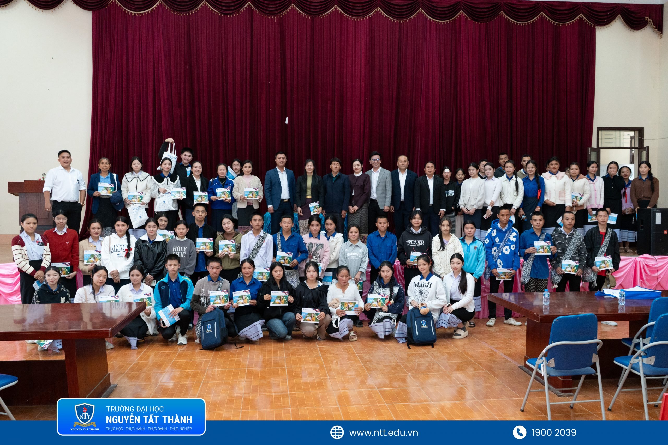 Tại buổi làm việc, Trường Đại học Nguyễn Tất Thành đã trao tặng 30 suất học bổng giá trị cho học sinh có thành tích học tập xuất sắc tại các trường trung học phổ thông của tỉnh Huaphanh, gồm 15 suất học bổng toàn phần (100%) và 15 suất học bổng bán phần (50%).