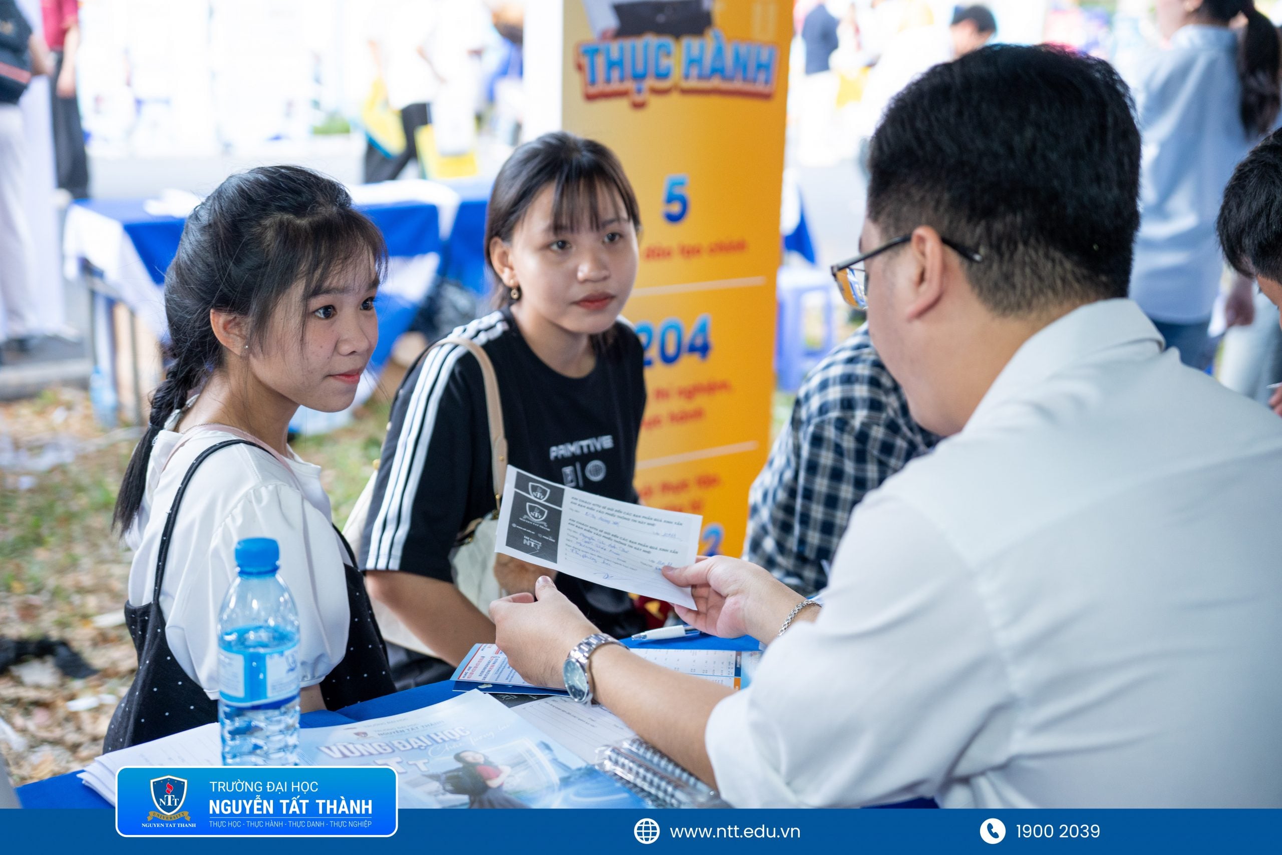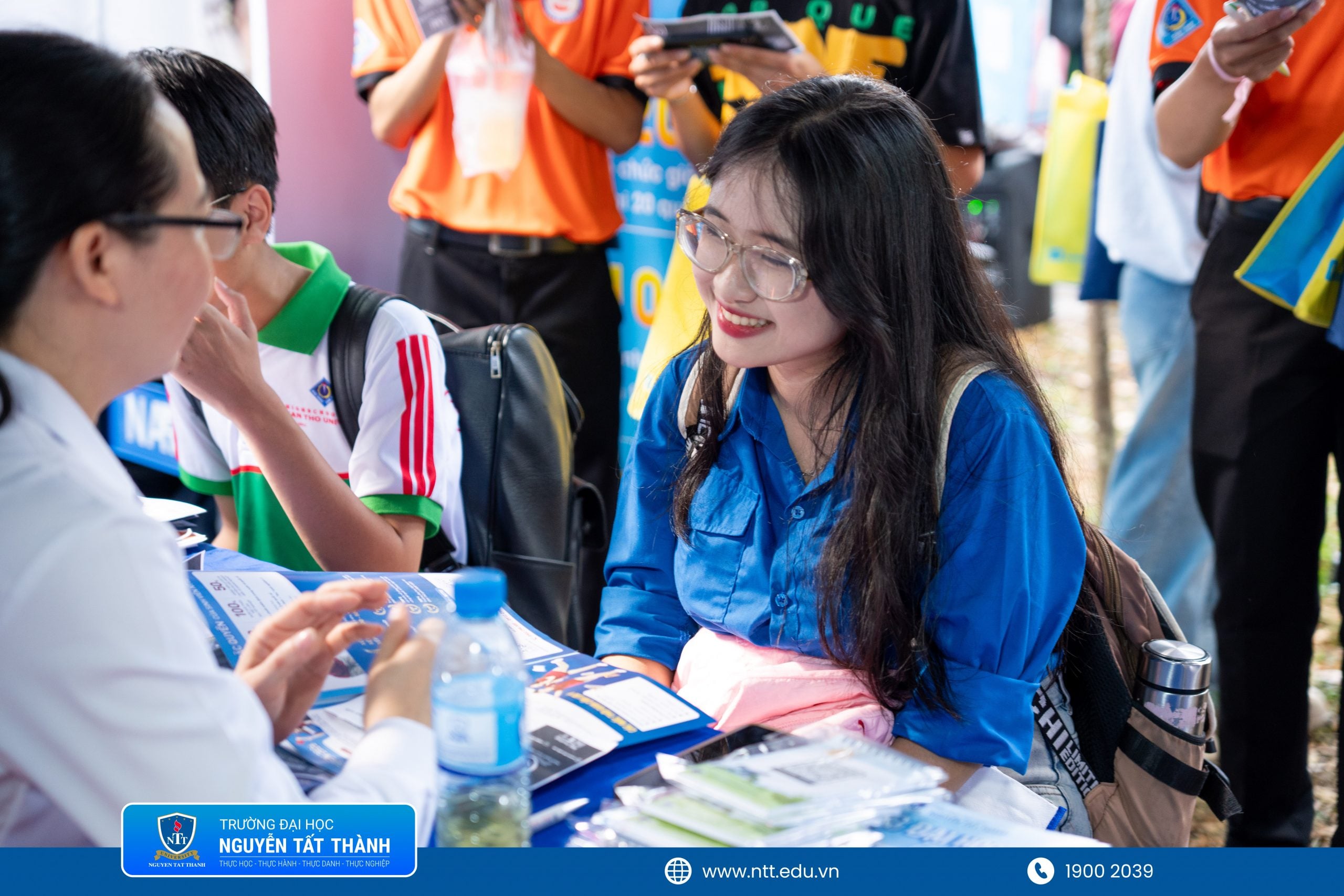 Tại gian tư vấn, học sinh được tìm hiểu hệ thống ngành học đa dạng của NTTU, trải rộng từ công nghệ thông tin, kỹ thuật, kinh tế – quản trị, marketing, logistics đến các lĩnh vực như y dược, truyền thông, du lịch… Những thông tin được chia sẻ không chỉ mang tính định hướng mà còn gắn liền với nhu cầu thực tế của thị trường lao động, giúp học sinh có cái nhìn cụ thể và rõ ràng hơn về tương lai nghề nghiệp.