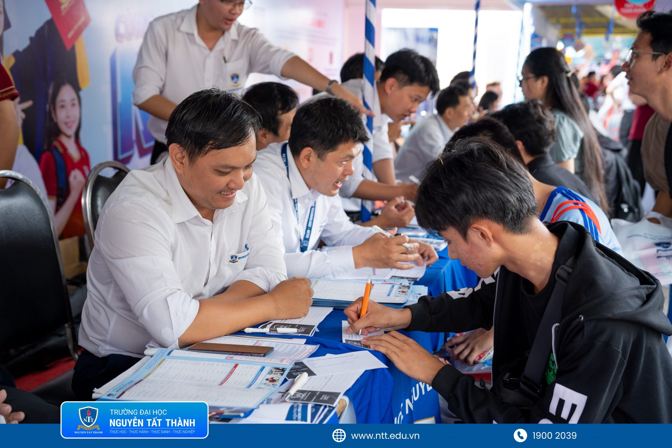 Đội ngũ tư vấn NTTU trực tiếp giải đáp thắc mắc về ngành học, phương thức xét tuyển và chính sách học bổng, học phí cho học sinh